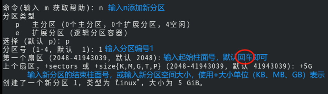 (4)在扩展分区上划分两个大小为5GB的逻辑分区。